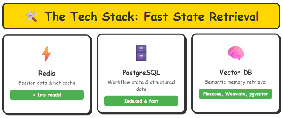 Persistence vs Performance: Every state save is I/O. Every memory retrieval is latency. Fast memory systems (Redis) cost more. Slow ones (S3) hurt user experience.