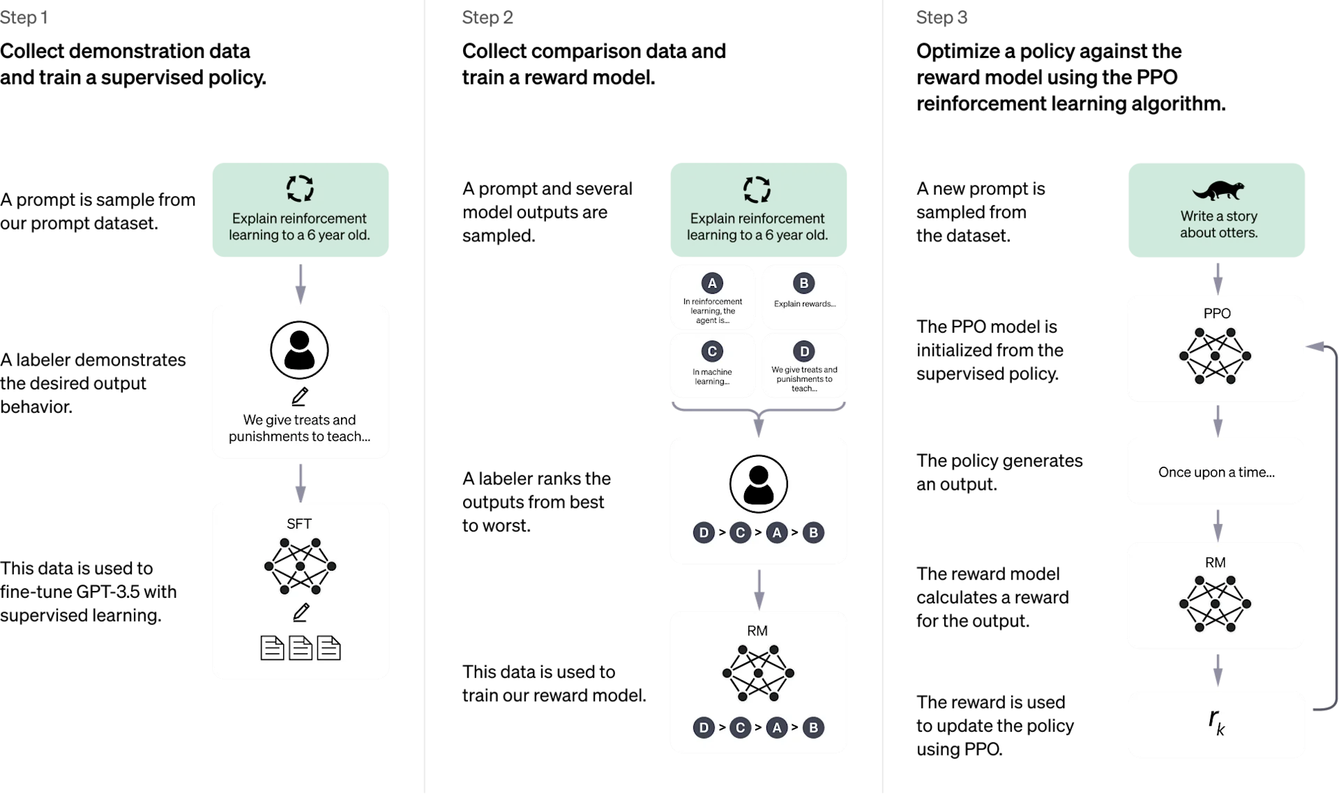The following diagram describes the training procedure of ChatGPT: